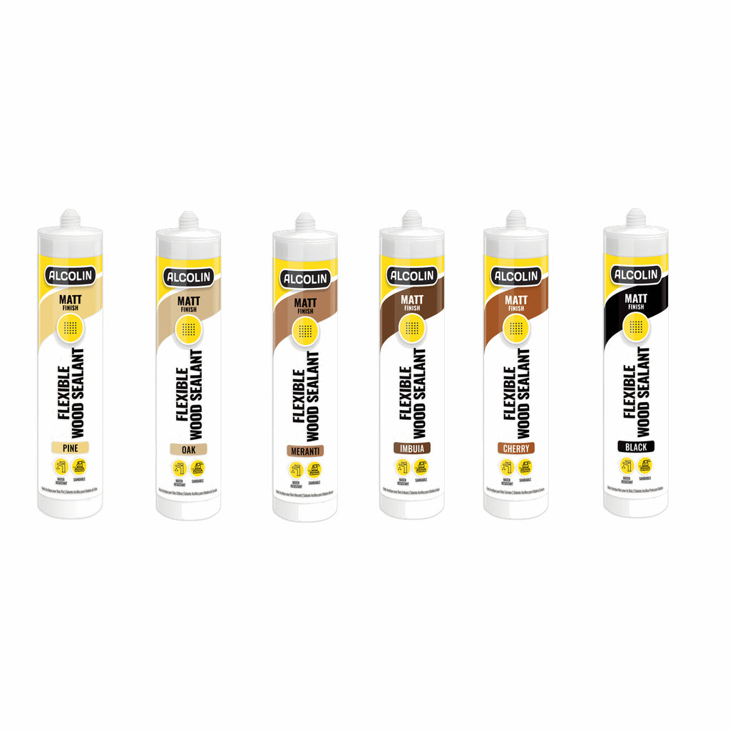 ALCOLIN FLEXIBLE WOOD SEALANT is a coloured wood sealant that is flexible and water resistant.  Ideal for sealing joints between wooden floors and walls, skirting boards, parquet floors, kitchen cupboards, wardrobes and other wooden substrates.  It can be varnished and is odourless, heat resistant and sandable.  It offers excellent adhesion to a wide variety of wood species, seasoned timber, varnished wood, fabricated wood, aluminium, concrete, glass and ceramic tiles.
