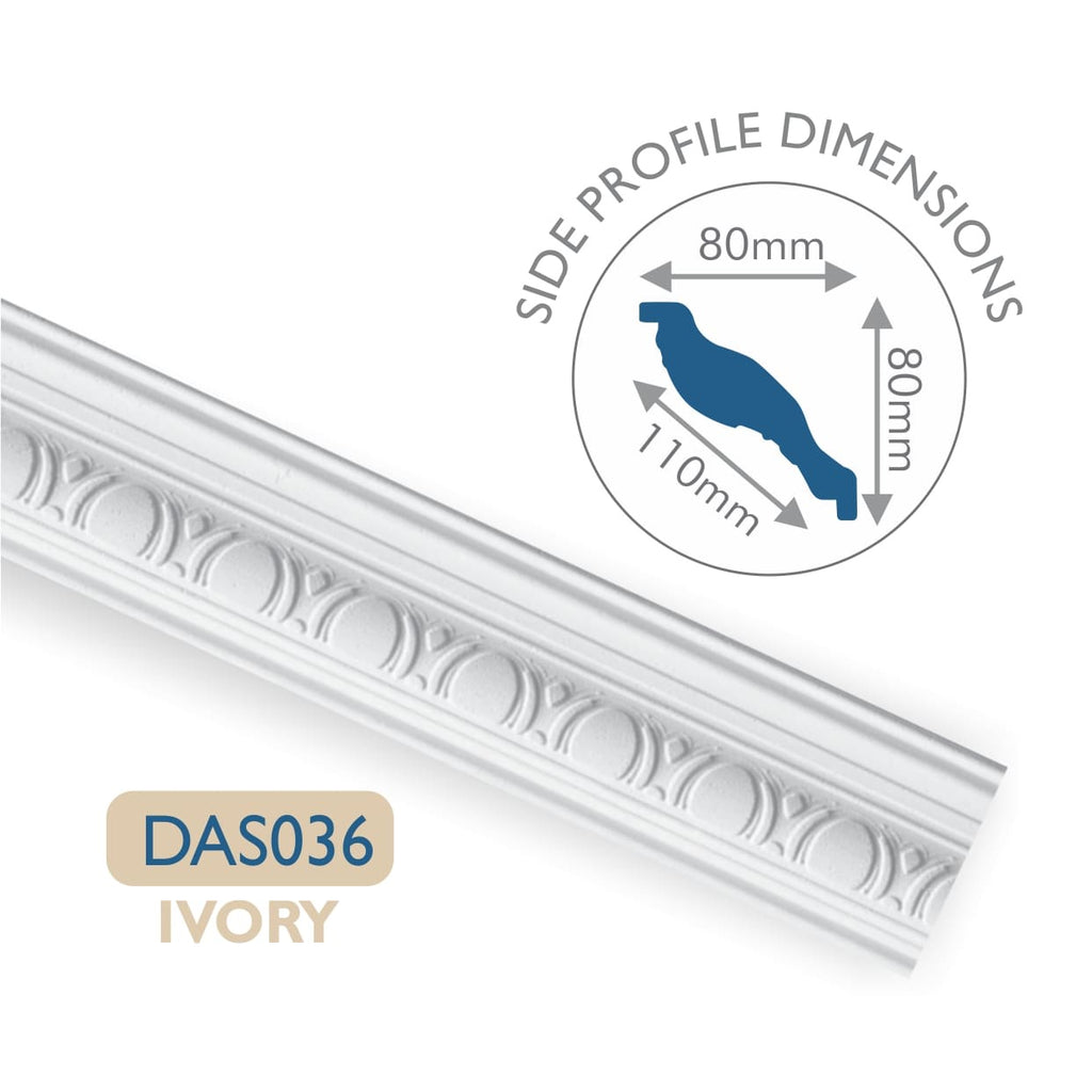 DAS036 Ivory Moulded Cornice 80x80mm - 2m length